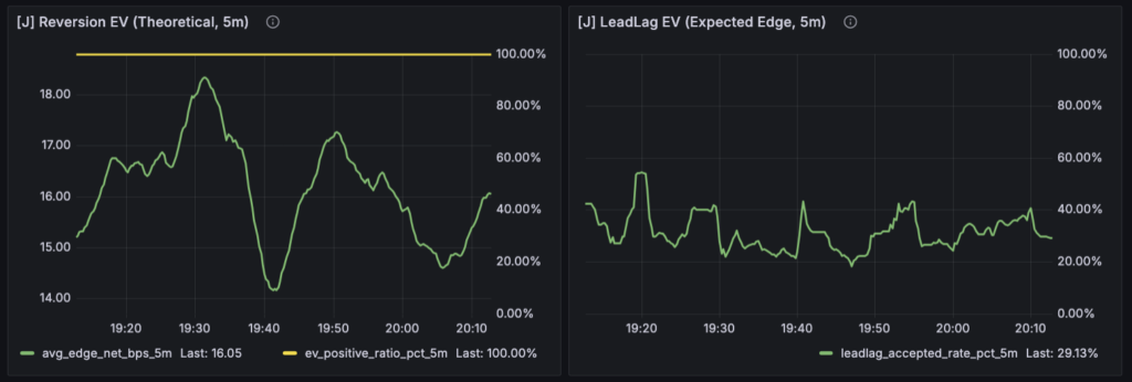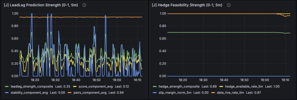 たとえば Reversion の強さや Lead-Lag のスコア、Hedge feasibility のような指標は、すべて市場の観測結果をもとにした解釈です。